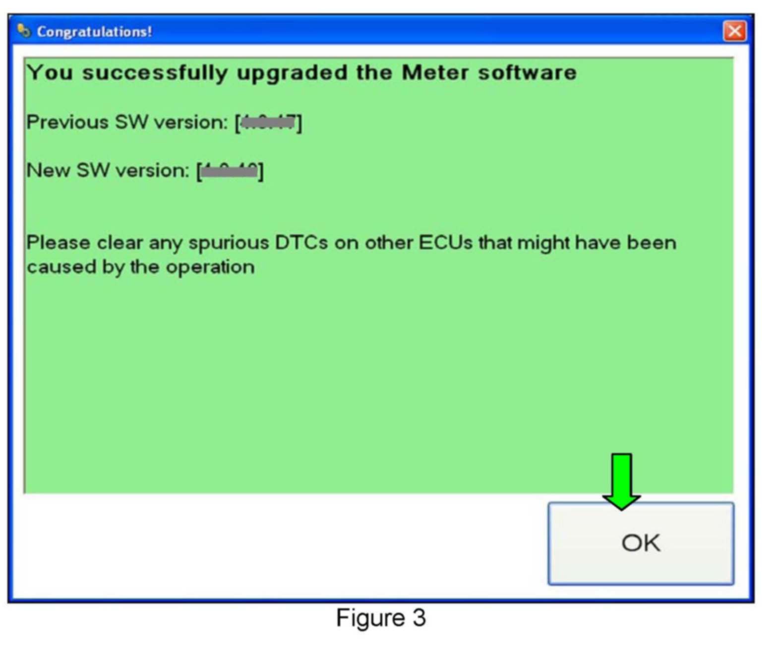 13. The screen in Figure 3 displays when reprogramming is complete - Select OK.