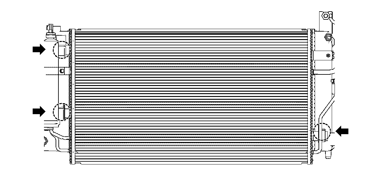 - When installing the radiator, securely insert the engaging points shown by the arrows () in the figure.
