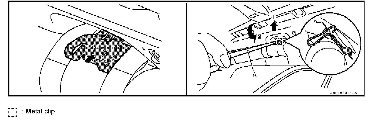 a.Fully insert a flat-bladed screwdriver (A) into center of metal clip.