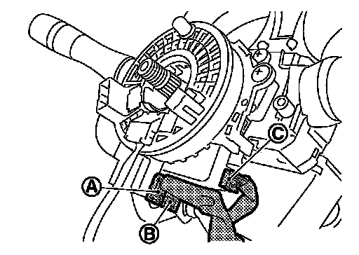 - Adjust the spiral cable locating pin (A) to the steering wheel locating pin hole (C).