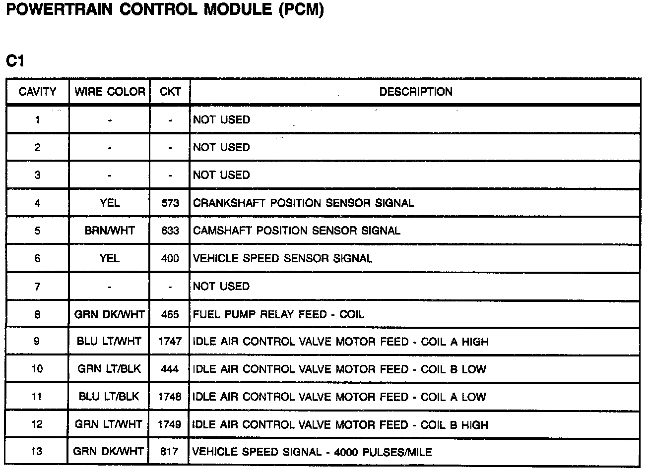 Powertrain Control Module (PCM) - C1 (Part 3 Of 4):