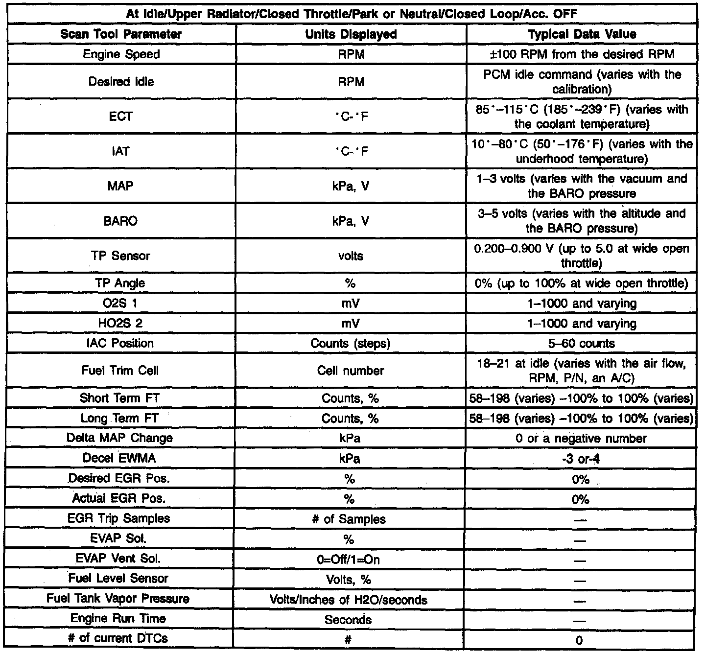 Scan Tool Data - Specific Engine - EGR/EVAP:
