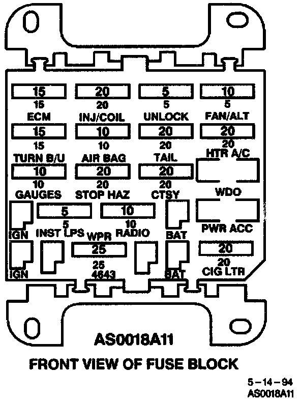 Front View Of Fuse Block: