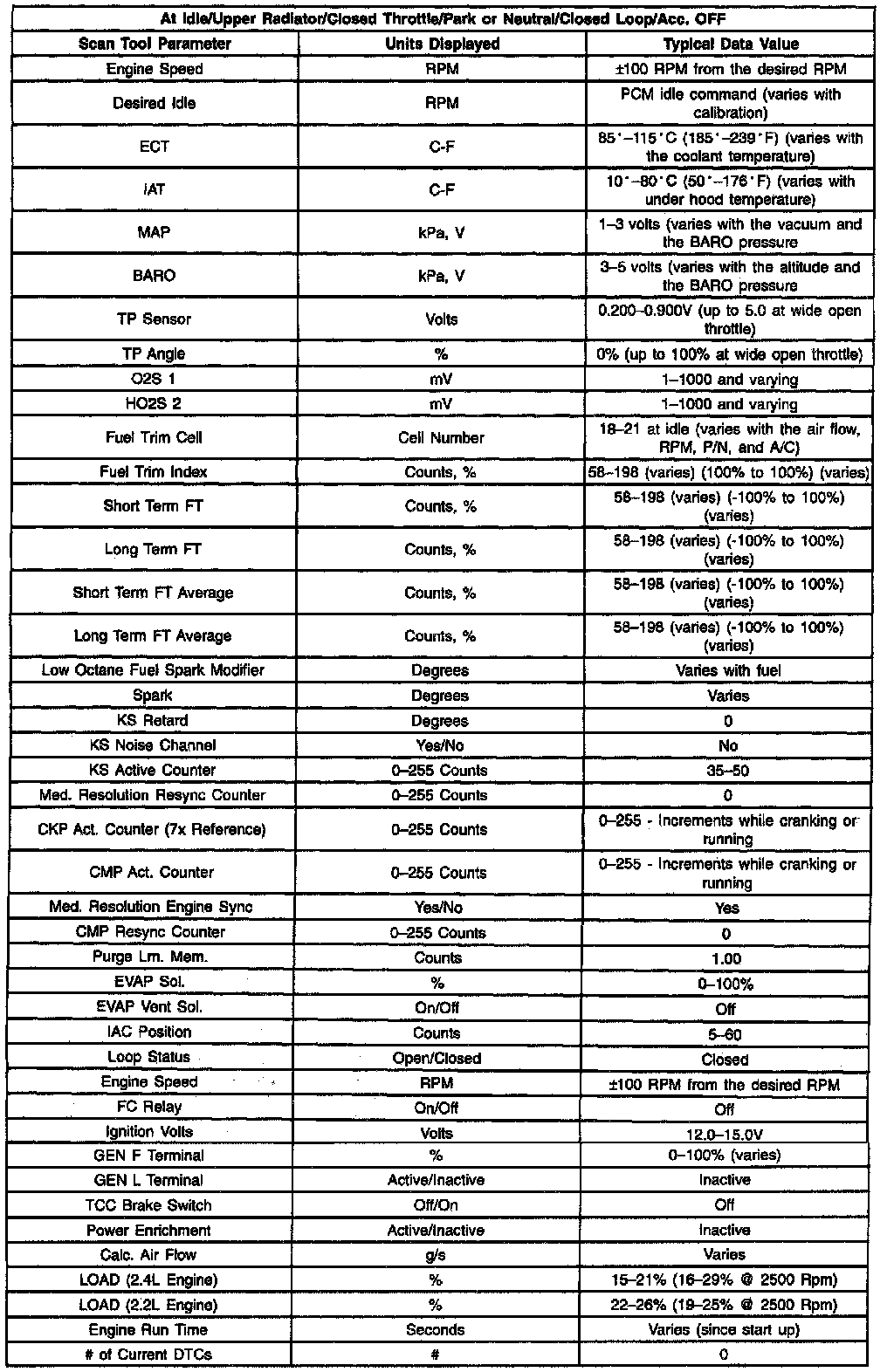 Scan Tool Data - Engine 1: