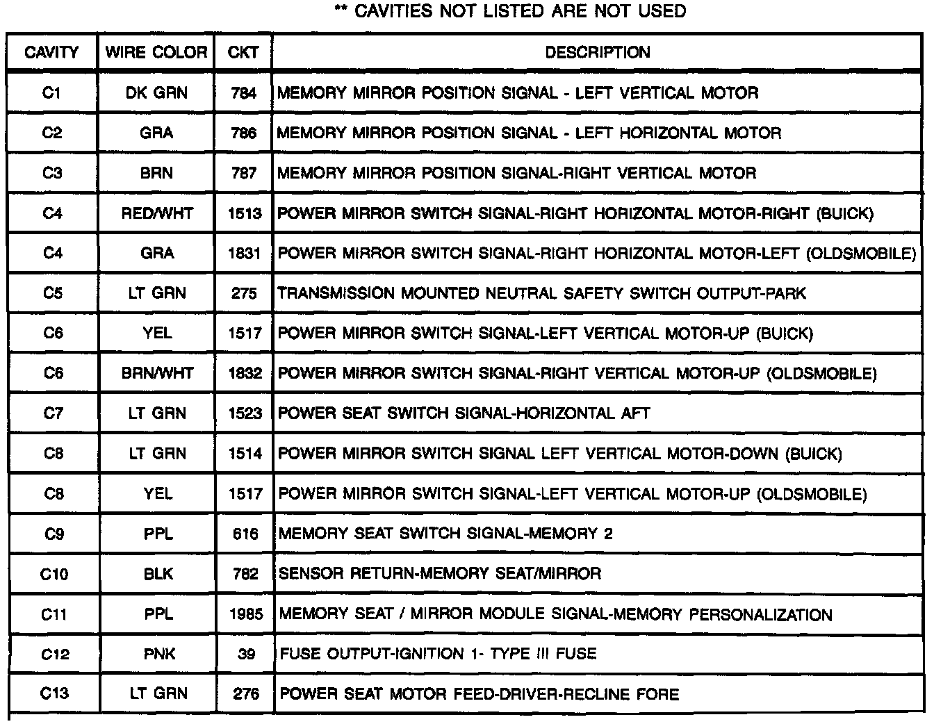 Memory Seat/Mirror Control Module (Part 2 Of 2):