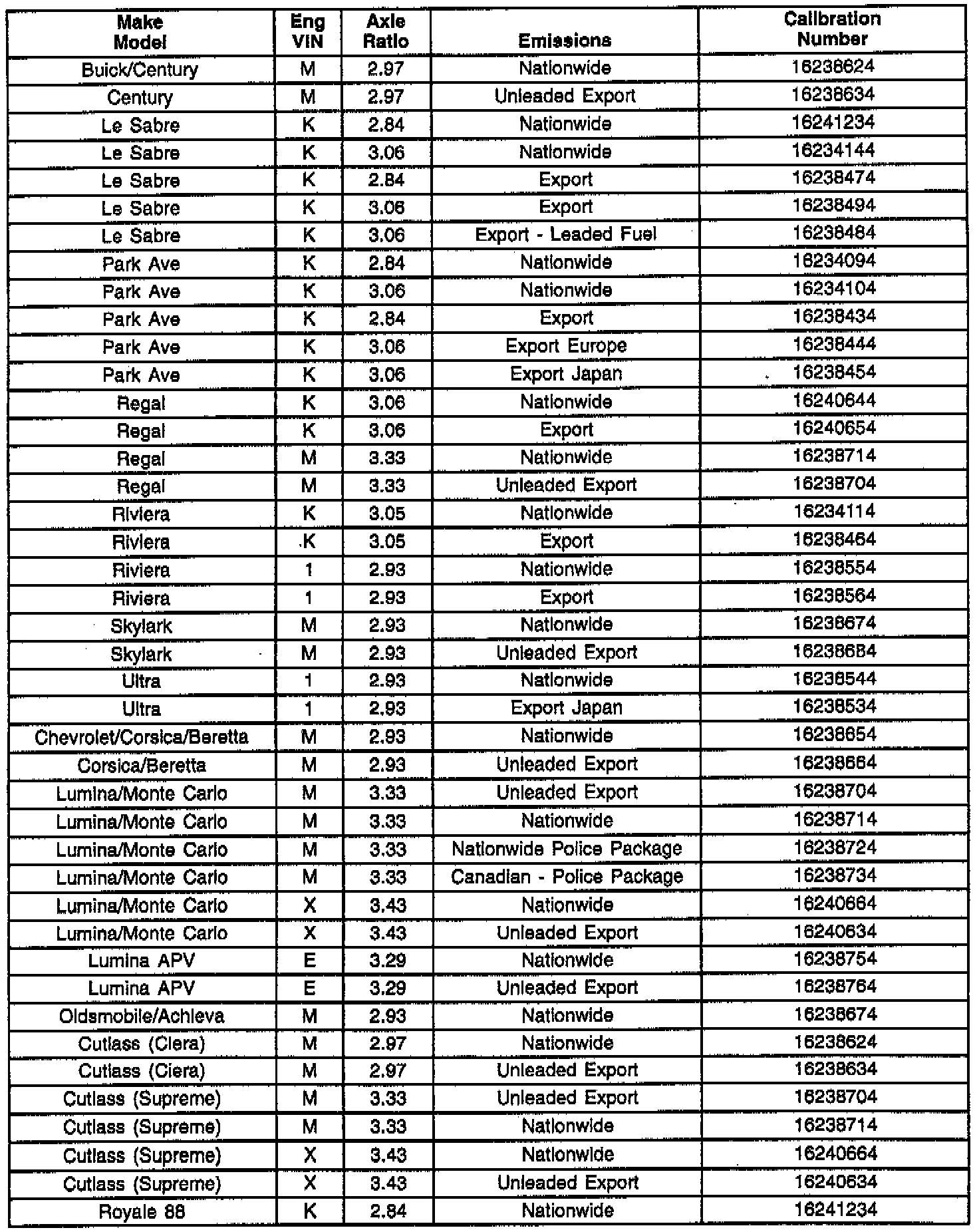 with 3.1 L, 3.4L, 3.8L Engines (VINs 1, E, K, M, X - RPOs L67, LA1, L36, L82, LQ1)