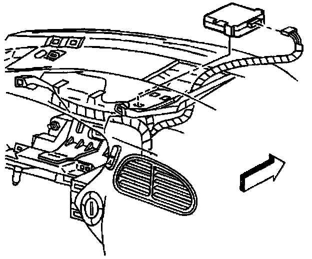 2. Release the remote control door lock receiver from the instrument panel by releasing the retainer tabs.