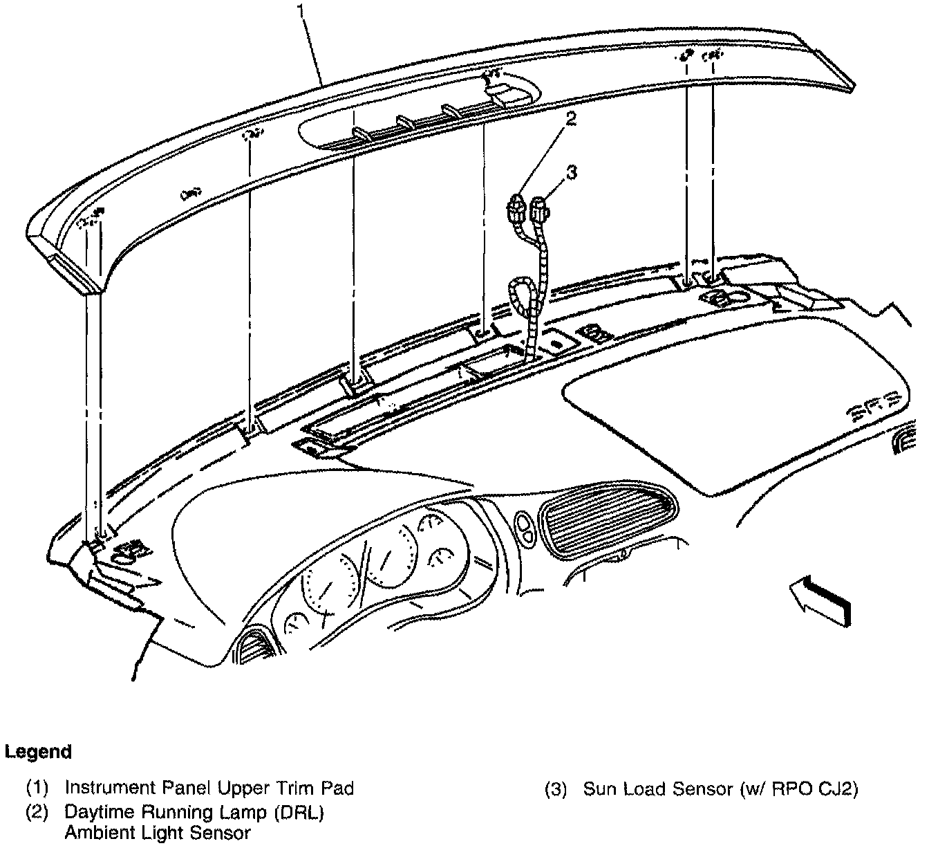 Sun Load Sensor And DRL Ambient Light Sensor: Top Of Instrument Panel: