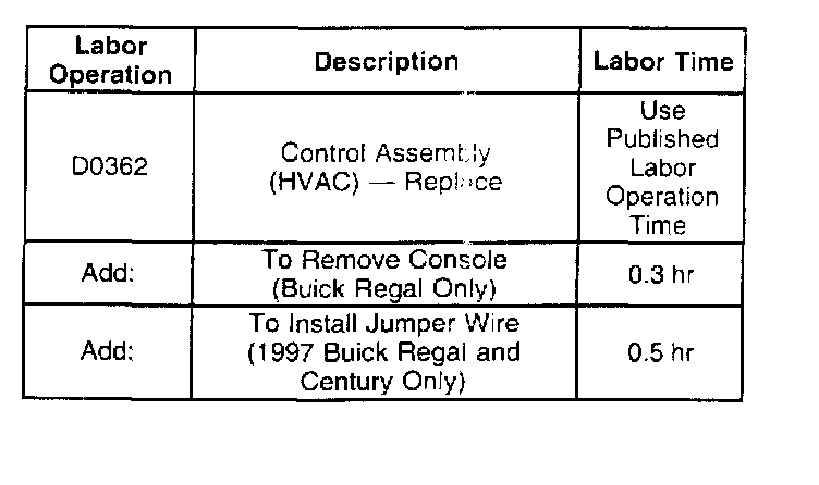 On the 1997 Buick Century and Regal, additional steps are required. You will have to run a jumper wire to the new HVAC controller. Be sure to follow the additional 1997 model year steps below.
