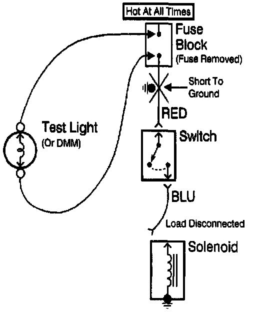 This test checks a short to ground along a wire or through a connection, or switch.Testing For Short Ground: