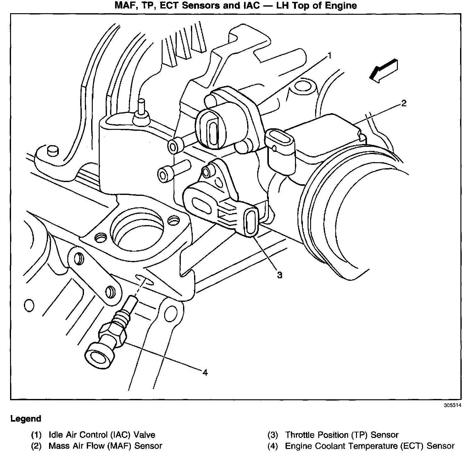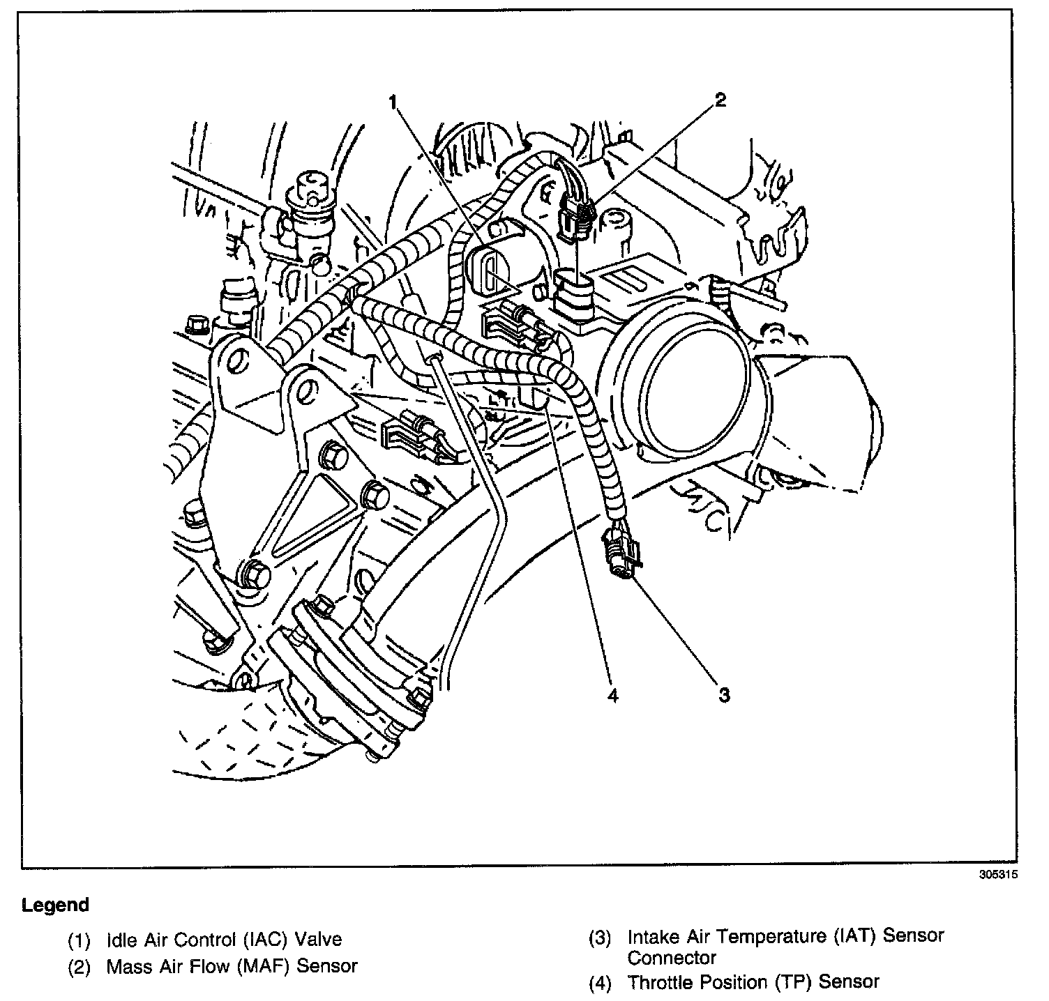MAF, IAT, TP Sensors, And IAC - LH Top Of Engine: