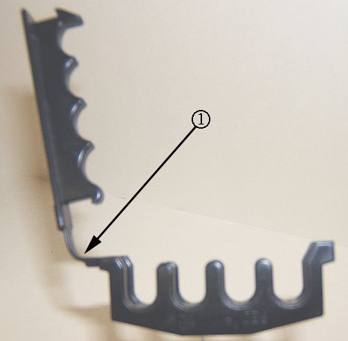 2. Remove the 1-3-5 spark plug plastic retaining channel (cover) clip/bracket (2) from the engine and discard it.