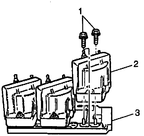 2. Install the ignition coil attaching screws to (1) to the ignition control module.
