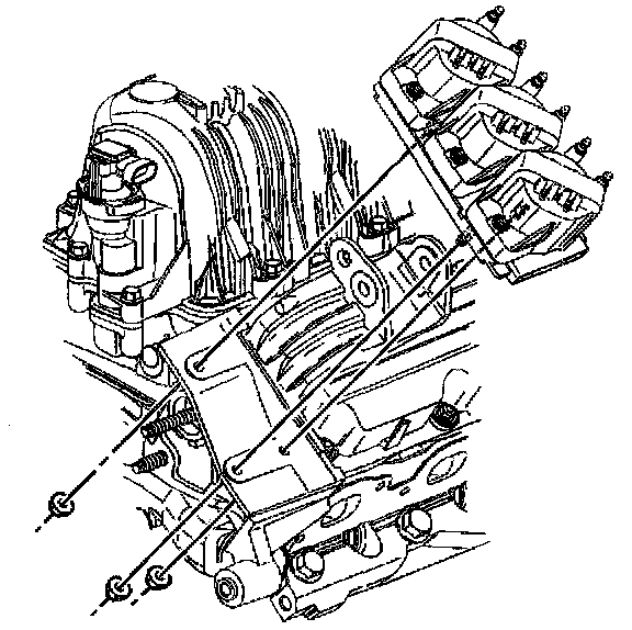 4. Remove nuts and washers securing the coil assemblies to the ignition control module.