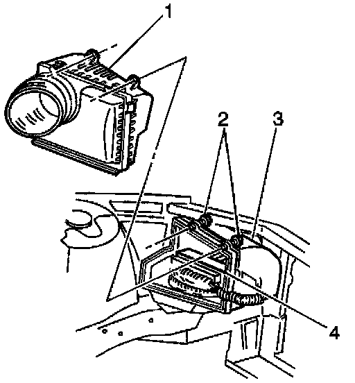 4. Reinstall the 2 screws (2) from the 2 air cleaner housing sections.