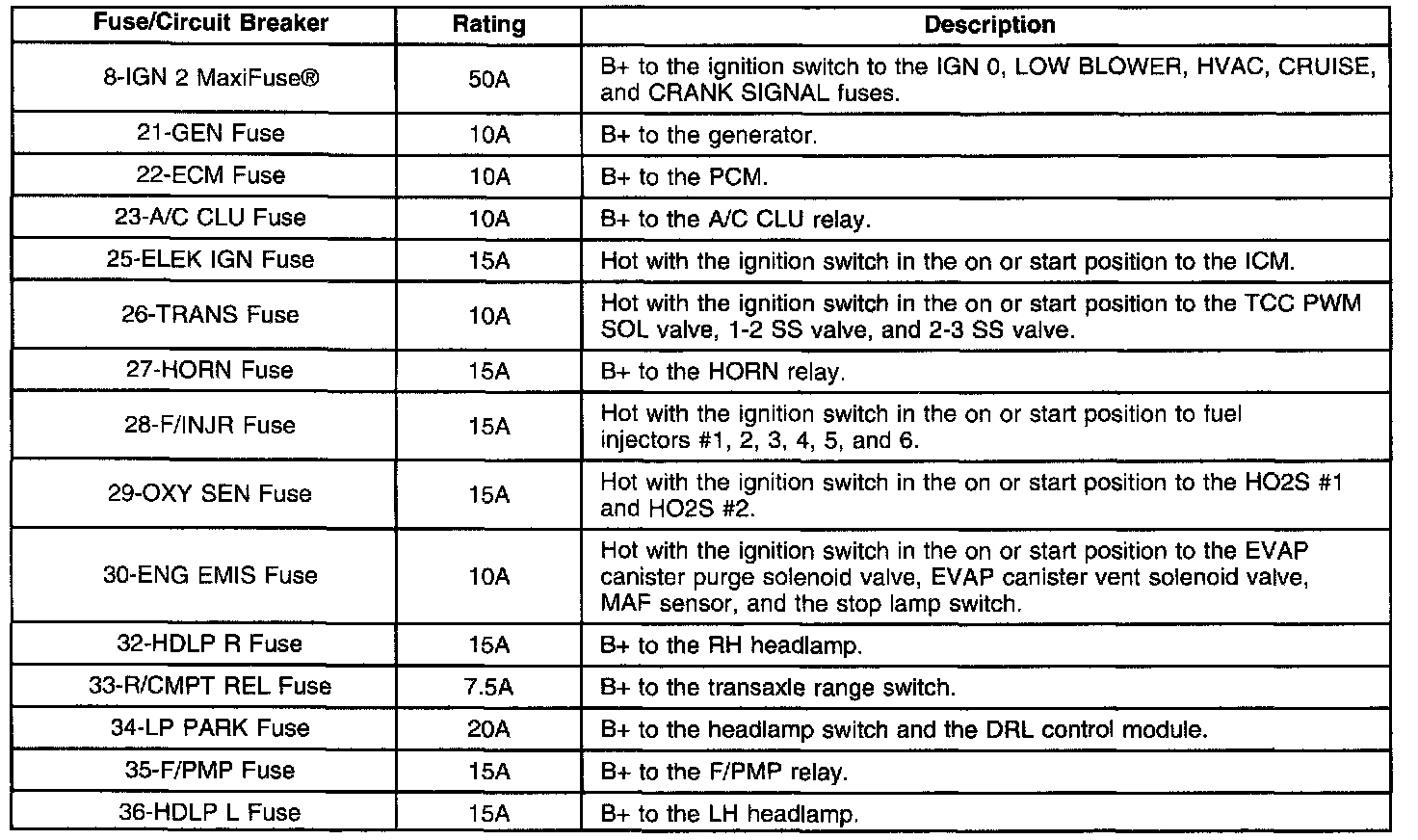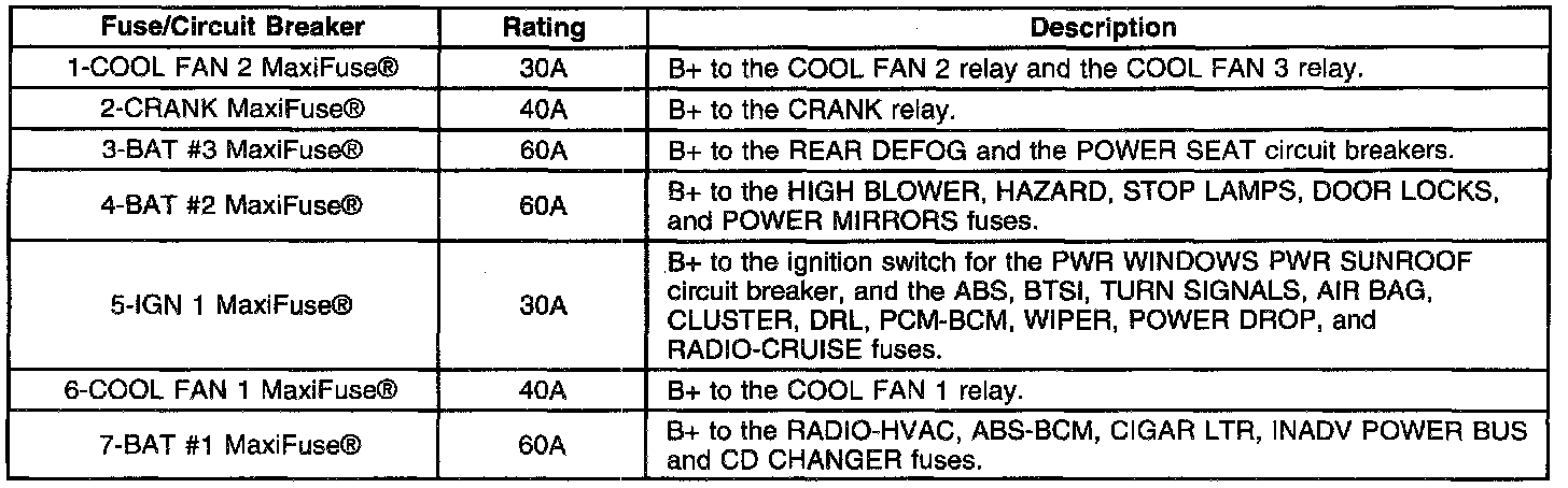 Underhood Accessory Wiring Junction Block Fuse Applications (Part 2 Of 2):