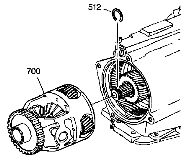 1. Assemble the sun gear thrust bearing (698), the differential carrier sun gear (697), the park gear (696), the internal gear thrust bearing (695) and the sun gear shaft (689) into the differential carrier (700).
