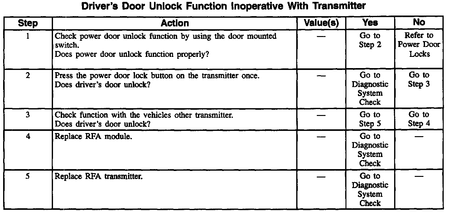 Driver's Do Not Unlock Function Inoperative With Transmitter