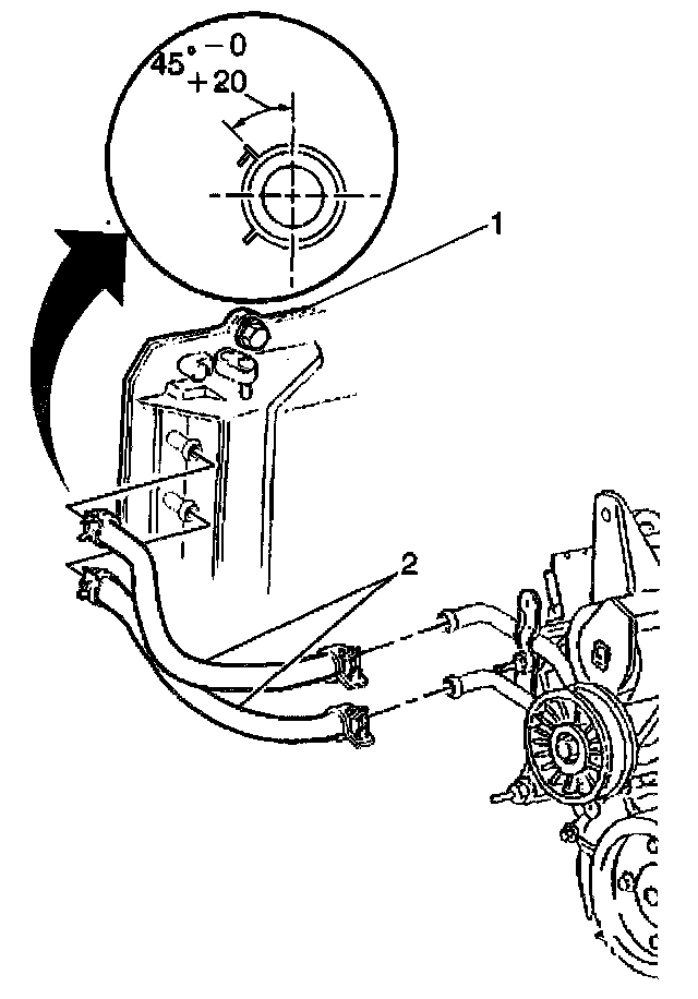 8. Install the heater hoses (2) to the heater core using the J 37097-A.