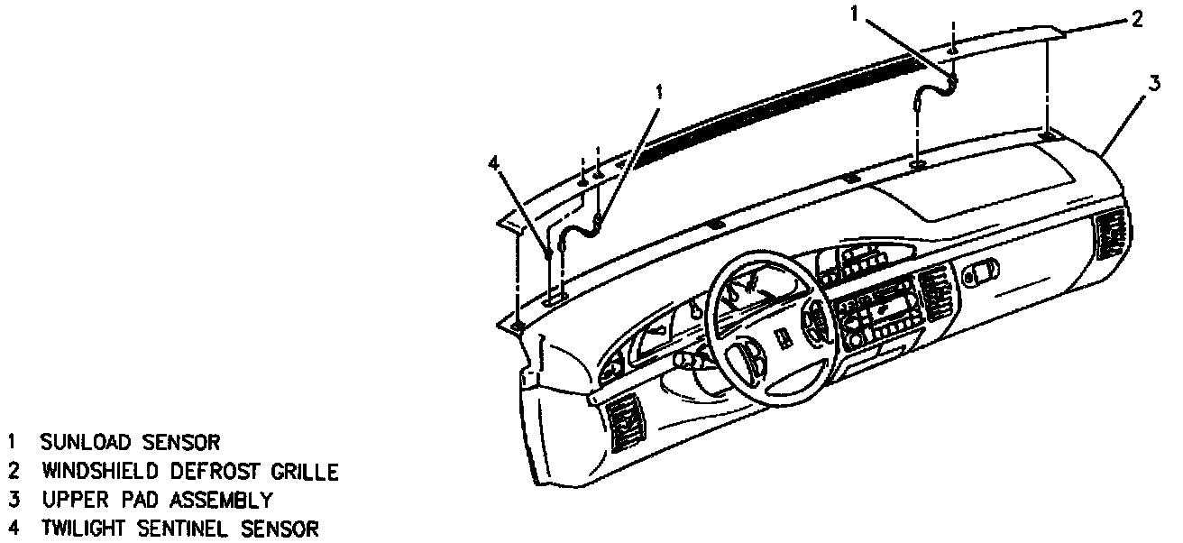 3. Defroster grille to upper pad assembly.