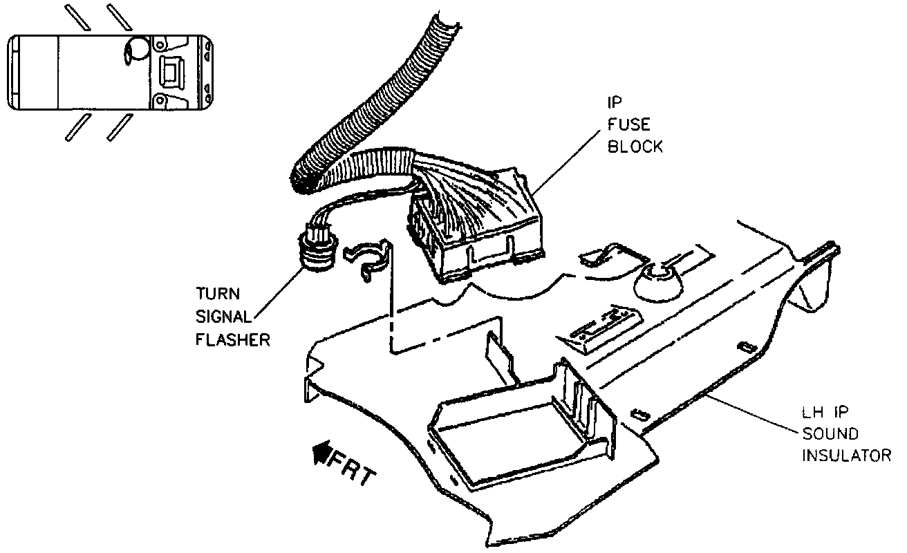 Under the left hand of the instrument panel, on the left hand instrument panel sound insulator