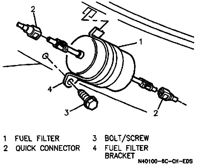 The inline fuel filter can be found on the right front body rail under the vehicle.