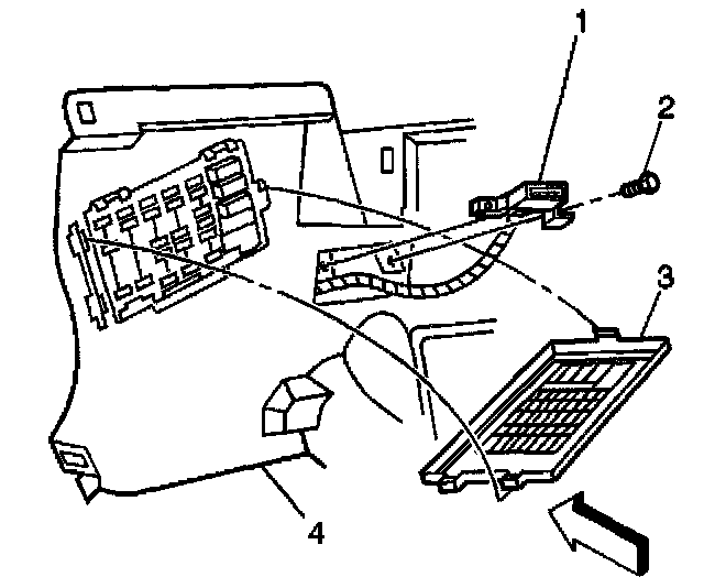 Fuse Block Access Cover ReplacementRemove the fuse block cover (1) in order to access the fuses. Several fuses are also located in the relay center. Perform the following steps in order to remove the fuse block cover: