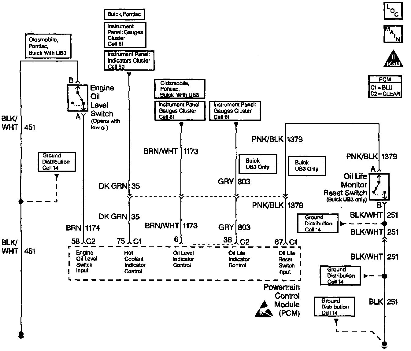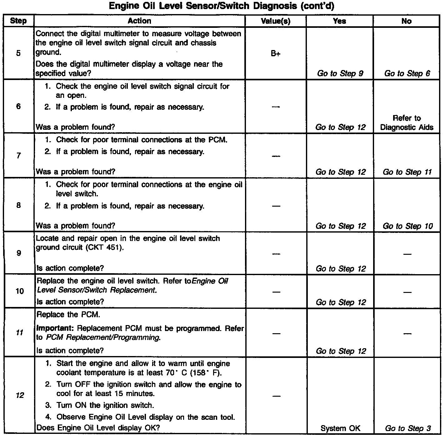 ^ Poor connection at PCM or oil level sensor. Inspect harness connectors for backed out terminals. Improper mating, broken locks, improperly formed or damaged terminals, and poor terminal to wire connection.