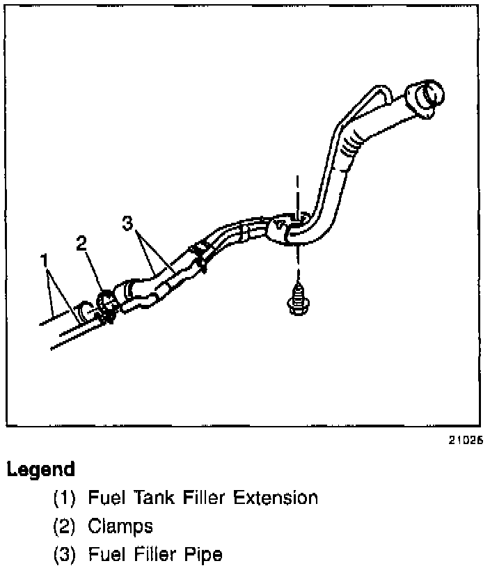 To prevent refueling with leaded fuel, the fuel filter neck has a built-in restrictor and deflector. The opening in the restrictor will accept only the smaller unleaded gasoline fuel nozzle which must be fully inserted to bypass the deflector.