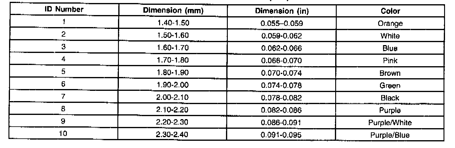 BEARING / INPUT CLUTCH HUB SELECTIVE THRUST WASHER (630) SELECTION GUIDE