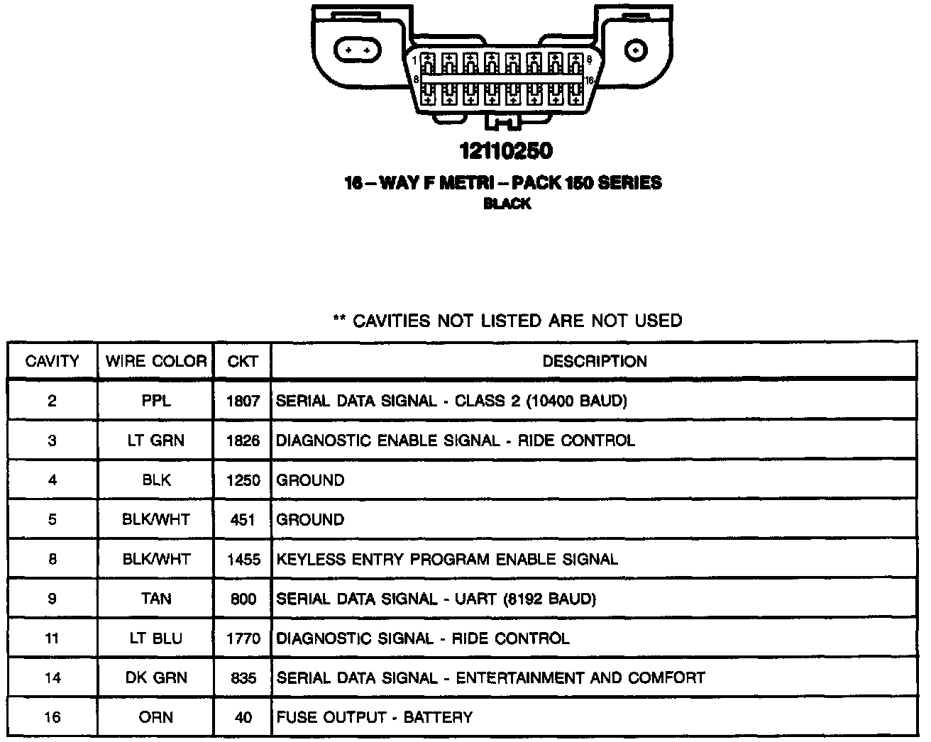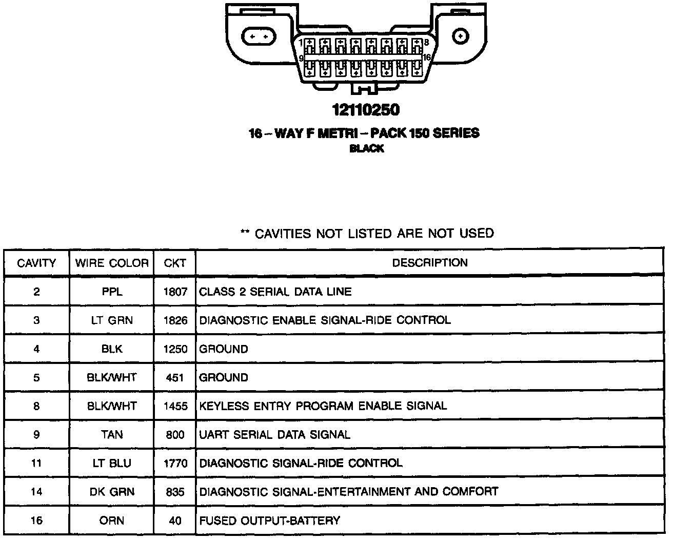 Data Link Connector (DLC) Connector Face: