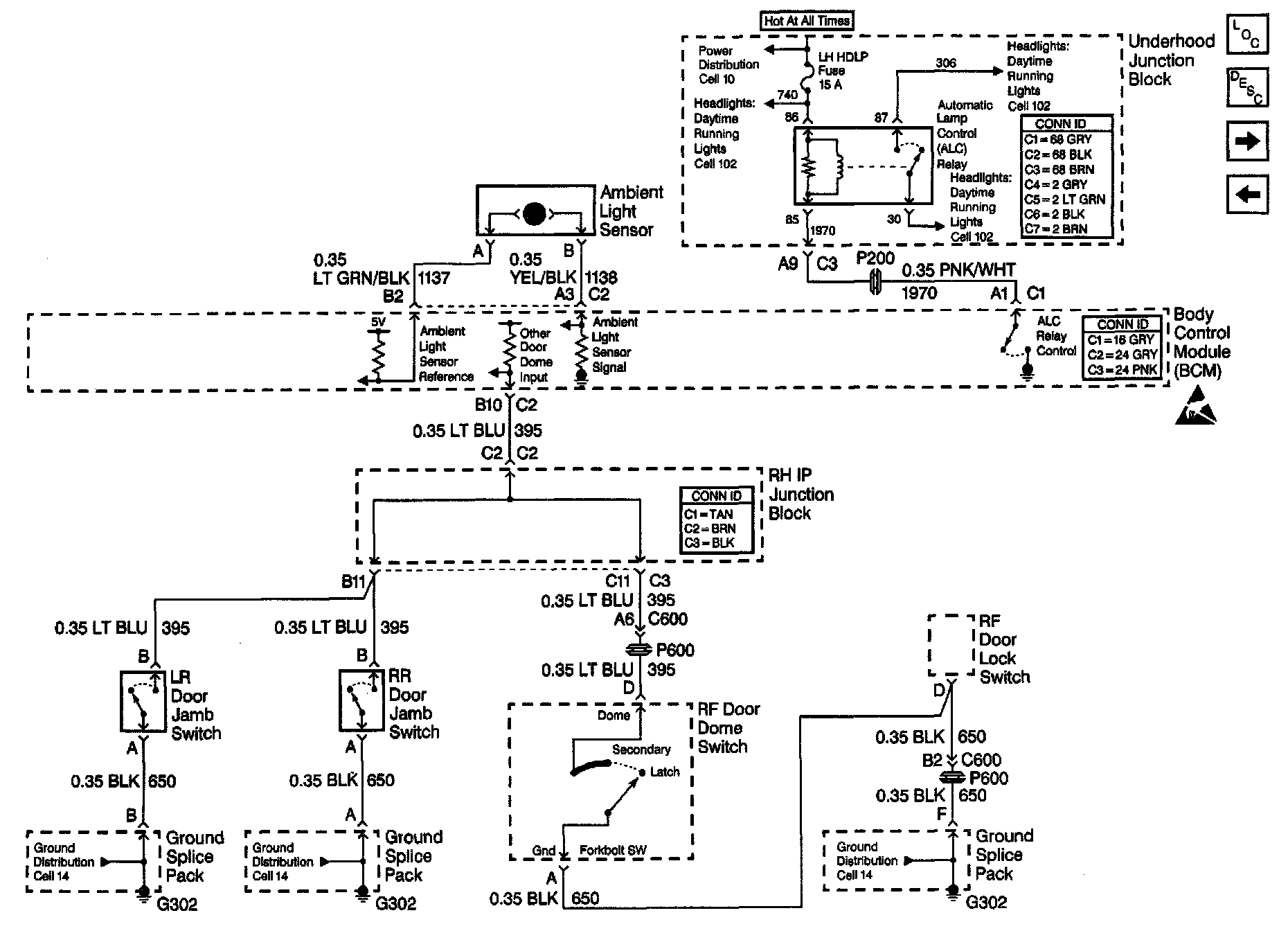 Body Control Module Schematics: Ambient Light Sensor; Right Rear, Left Rear, Right Front Door Lock Switches: