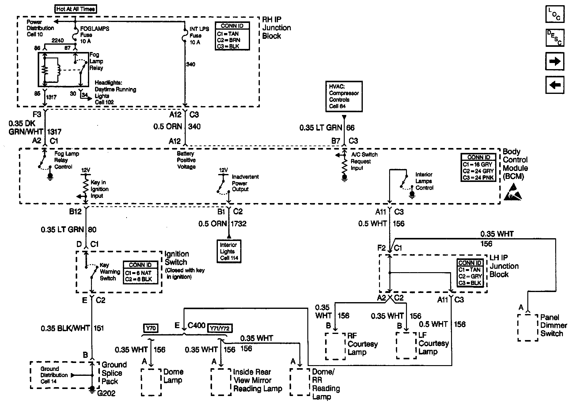 Body Control Module Schematics: Ignition Switch, Reading Lamp, Panel Dimmer Switch: