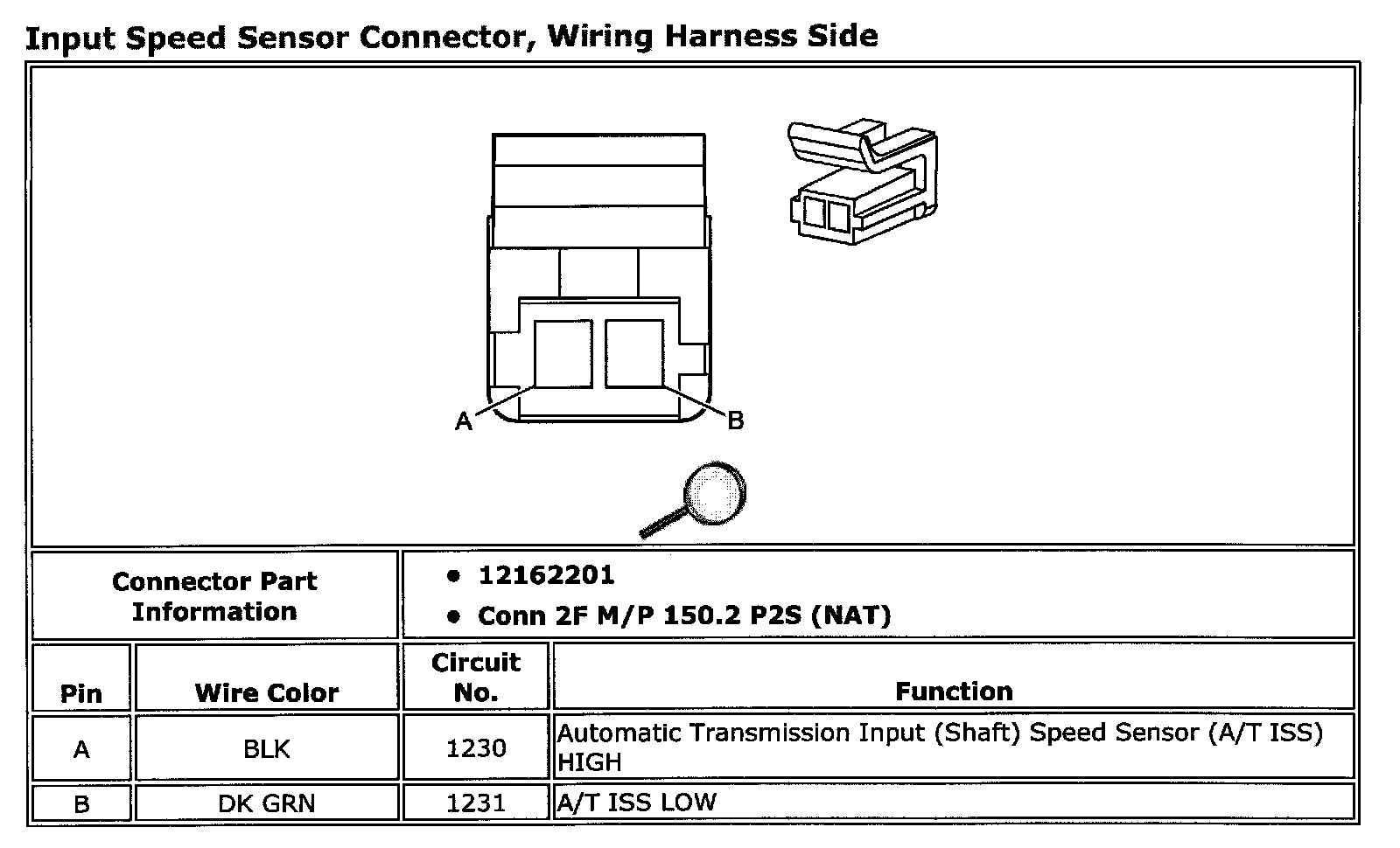 1-2 Shift Solenoid (SS) Valve Connector, Wiring Harness Side