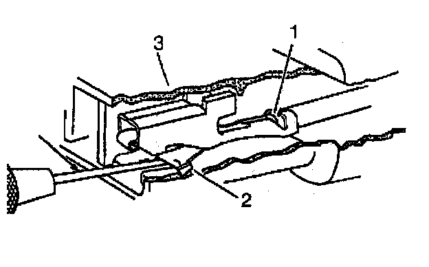 4. Grasp the wire at the back of the connector body and gently pull the terminal (1) from the connector body (3).