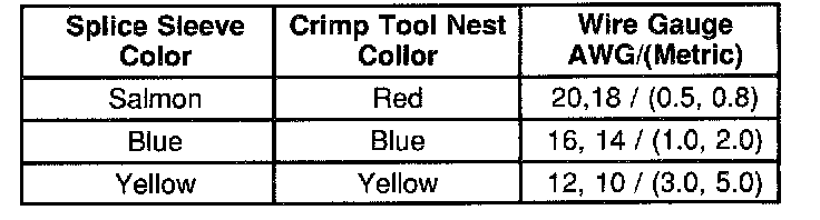 5. Select the proper splice sleeve (2) and the required crimp nest tool, refer to the Crimp and Seal Splice Table.