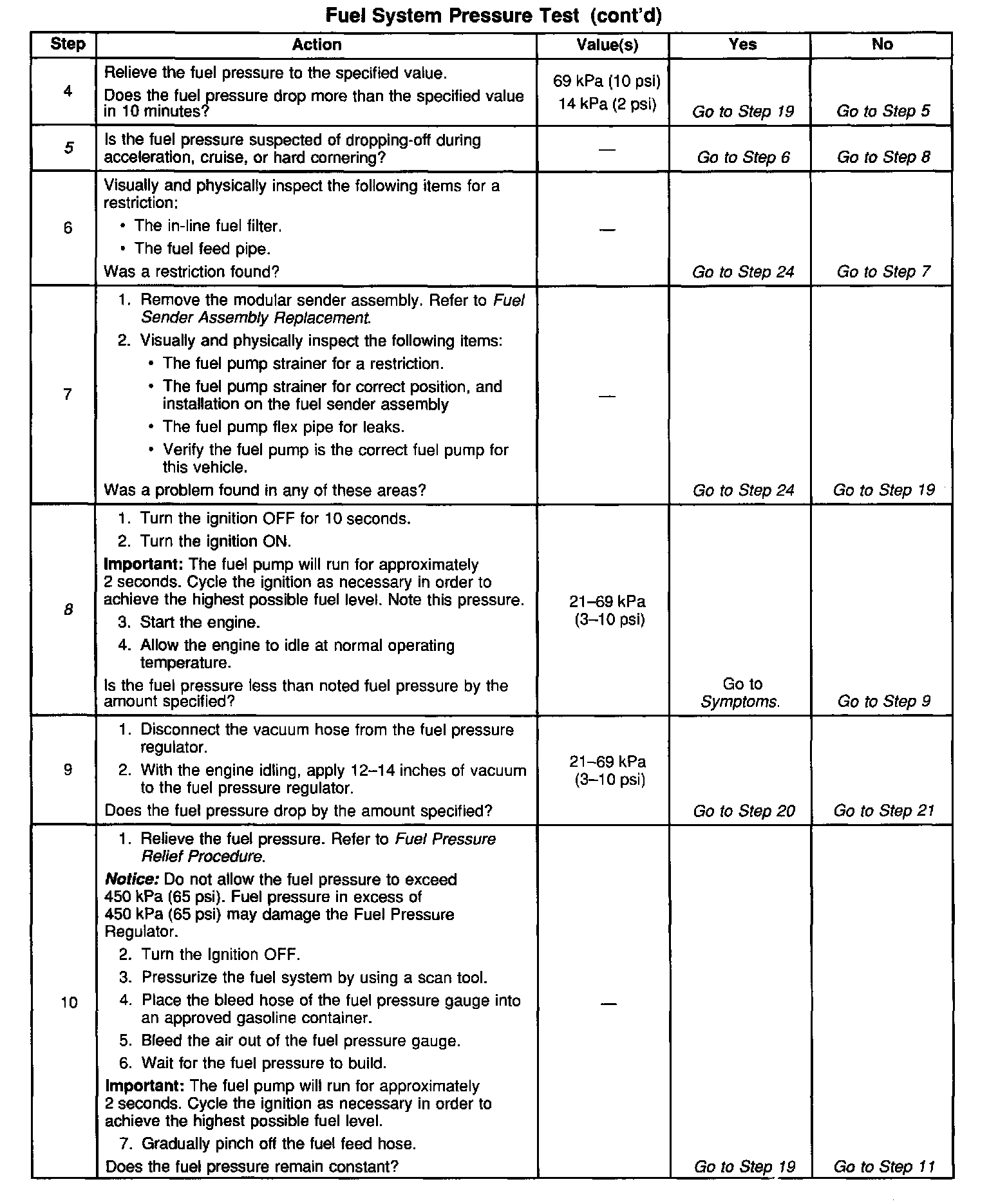 13. This test determines if the high fuel pressure is due to a restricted fuel return pipe or if the high fuel pressure is due to a faulty fuel pressure regulator.