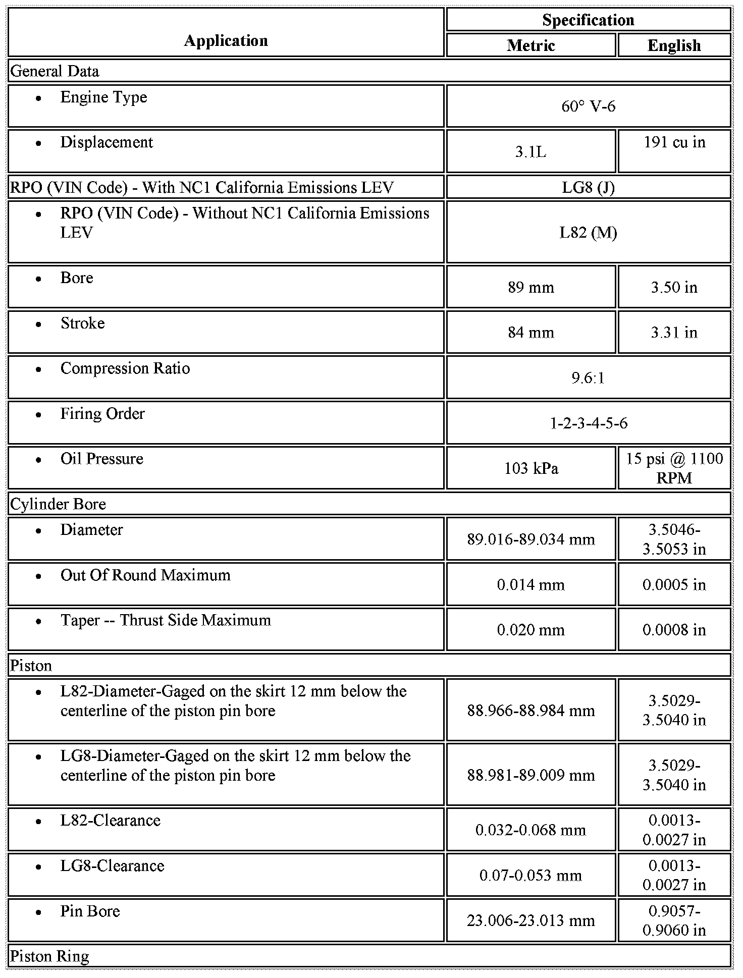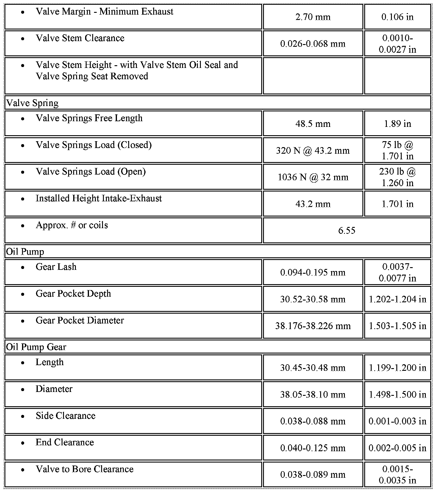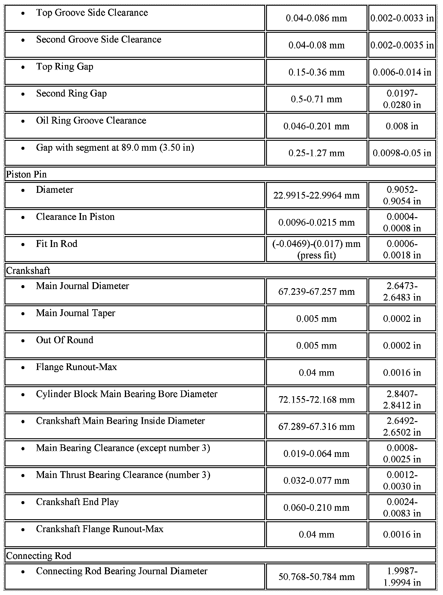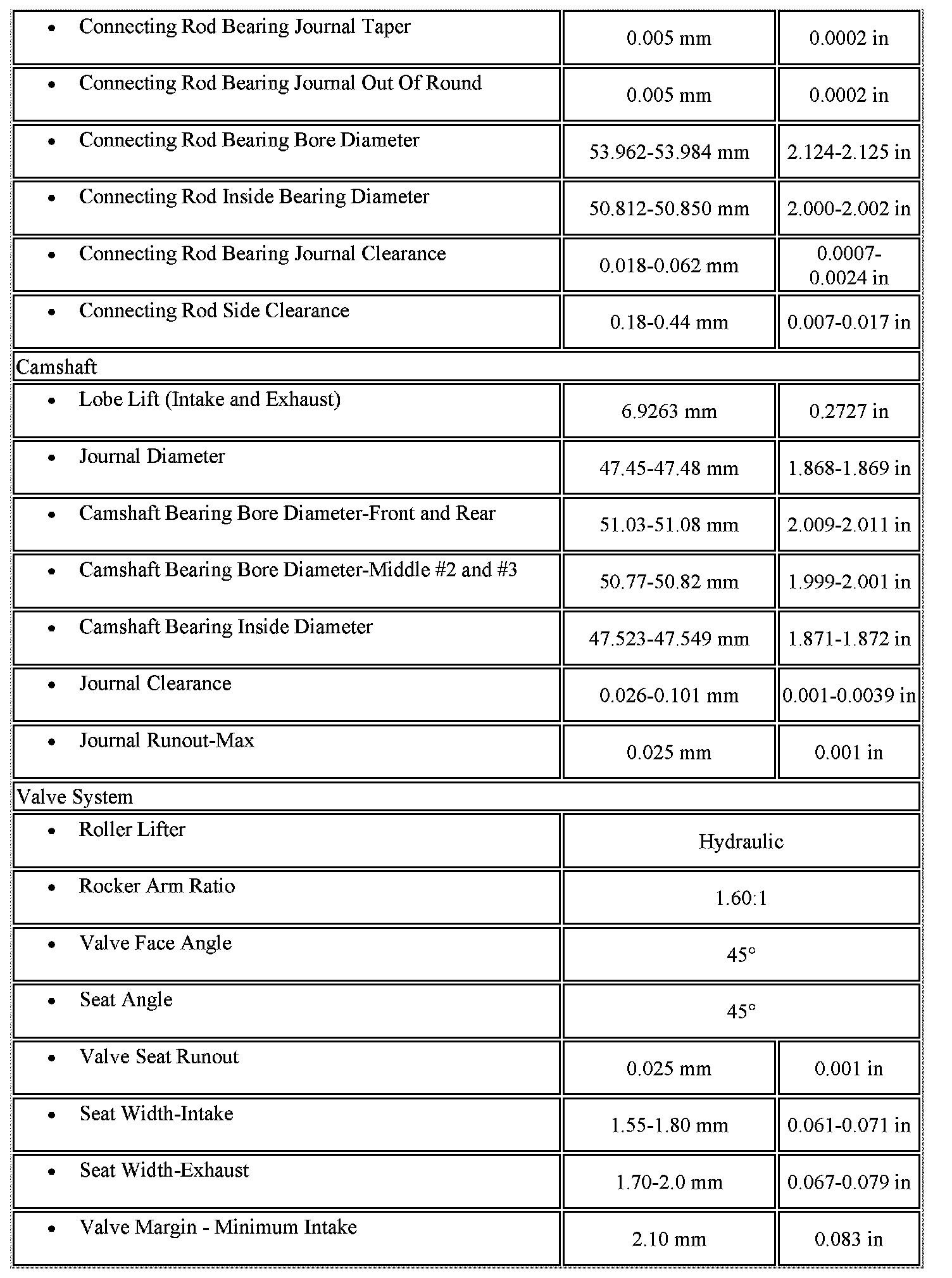 Engine Mechanical Specifications