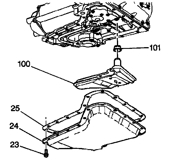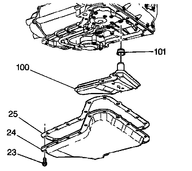 3. Install the gasket (25) and the oil pan (24). Refer to Oil Pan Replacement.