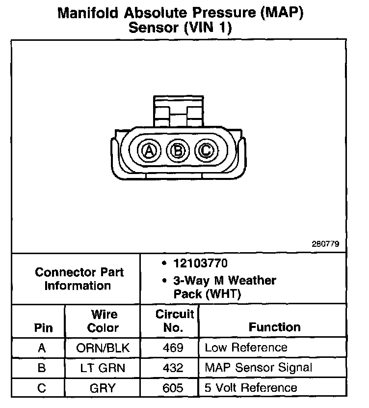 Manifold Absolute Pressure (MAP) Sensor (VIN 1):
