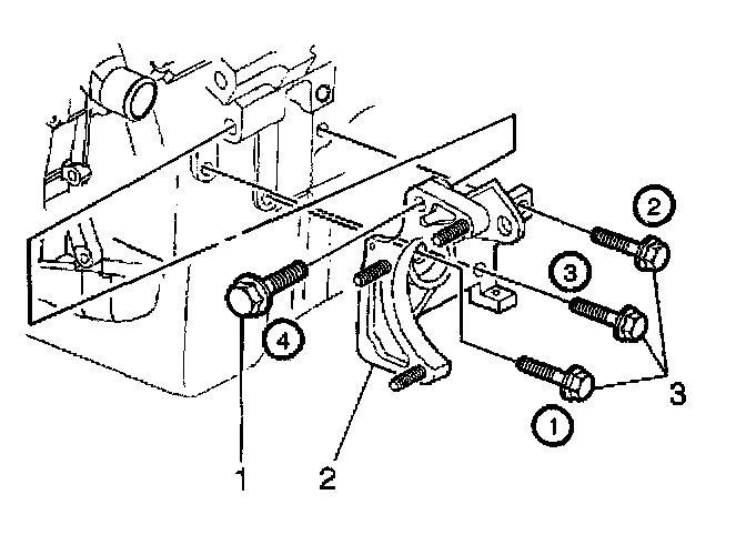 2. Install the retaining bolts (1,3) to the A/C compressor mounting bracket.