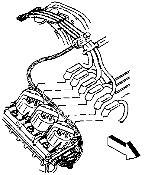 4. Remove the nuts and washers securing the coil assemblies to the ignition control module.