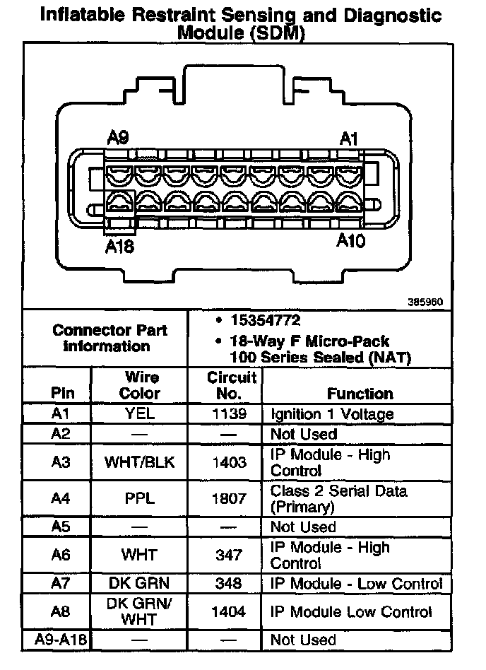 Inflatable Restraint Sensing And Diagnostic Module (SDM):
