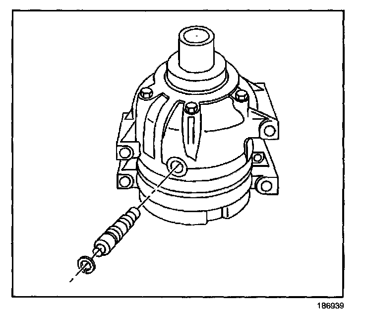 2. Remove the compressor control valve retaining ring using internal snap ring pliers.