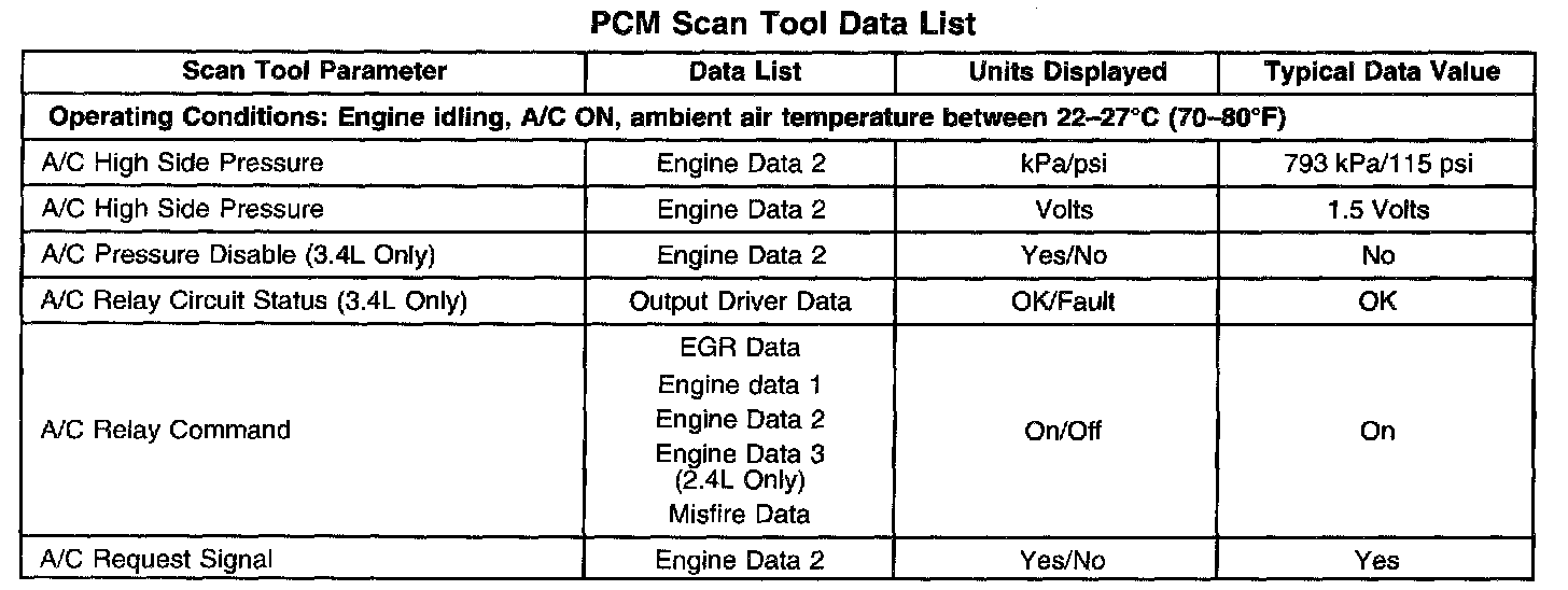 Scan Tool Data List - Powertrain Control Module (PCM)