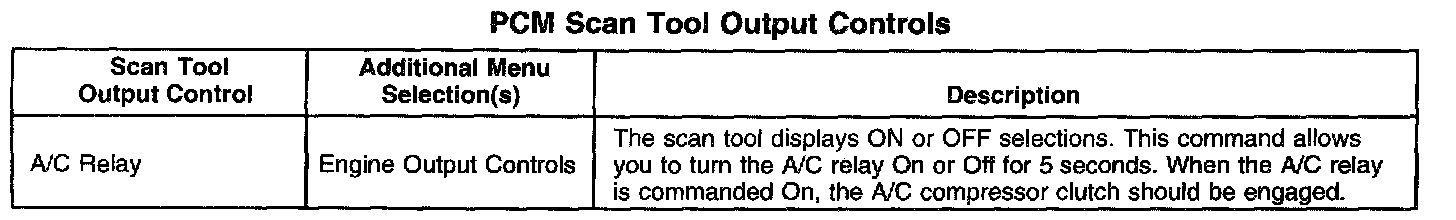 Scan Tool Output Controls - Powertrain Control Module (PCM)