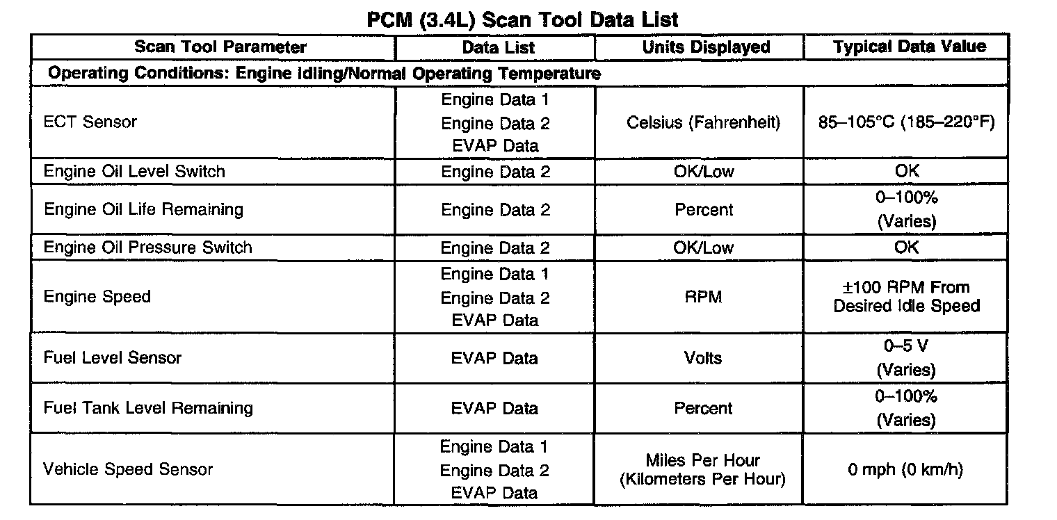 Scan Tool Data List - Powertrain Control Module (PCM)