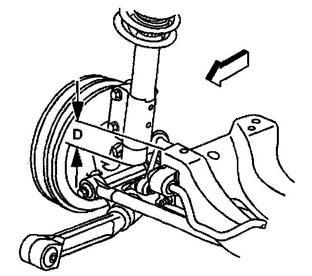 The D height dimension measurement determines the proper rear end ride height. There is no adjustment procedure. Repair may require replacement of suspension components.