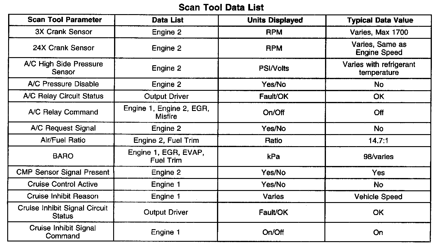 Scan Tool Data List - Powertrain System