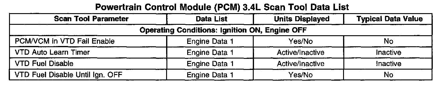 Powertrain Control Module (PCM) 3.4L Scan Tool Data List: